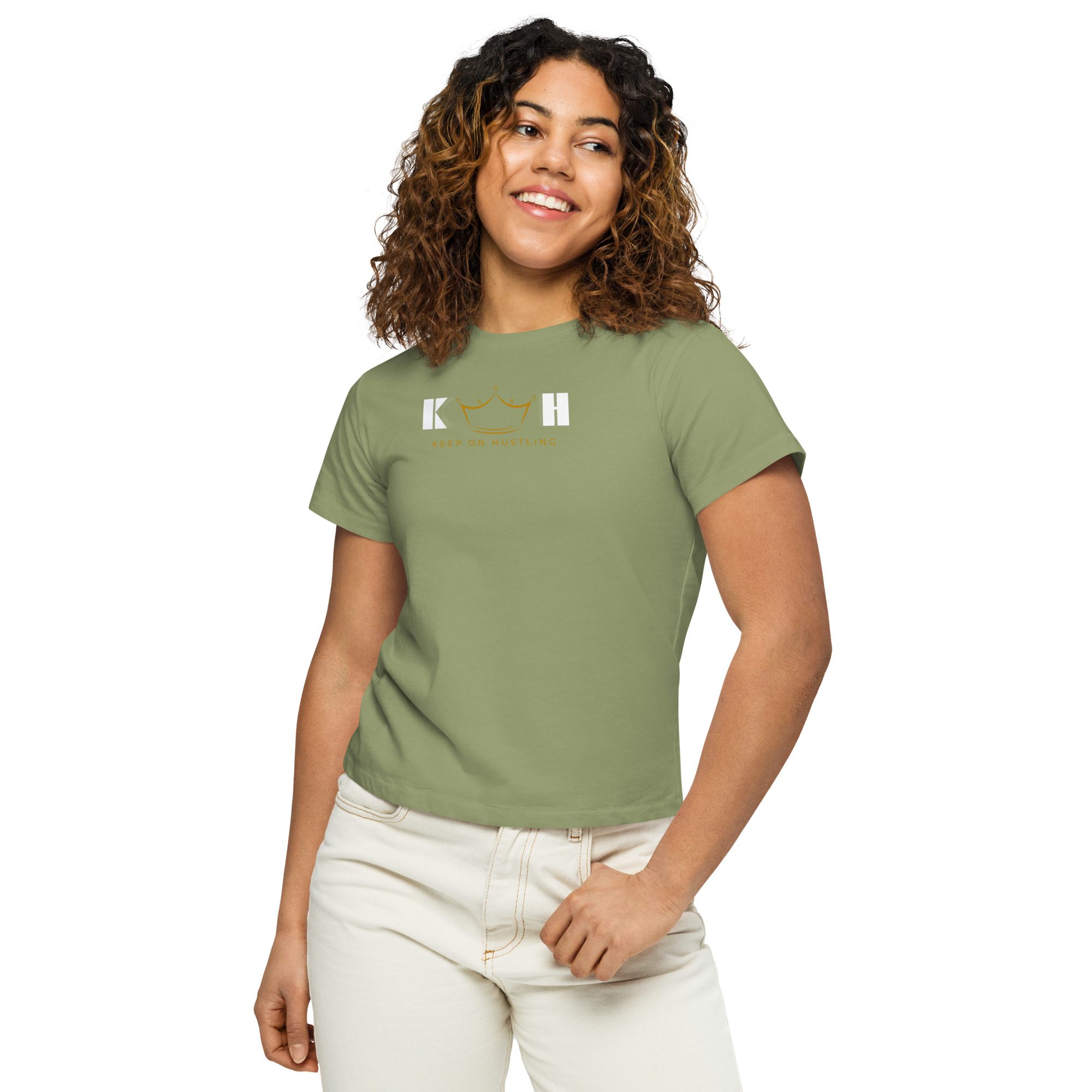 Made of 100% combed and ring-spun cotton, this t-shirt is ultra soft and smooth against the skin. With its flattering, longline fit and crew neck, this tee will look best paired with high-waisted bottoms.